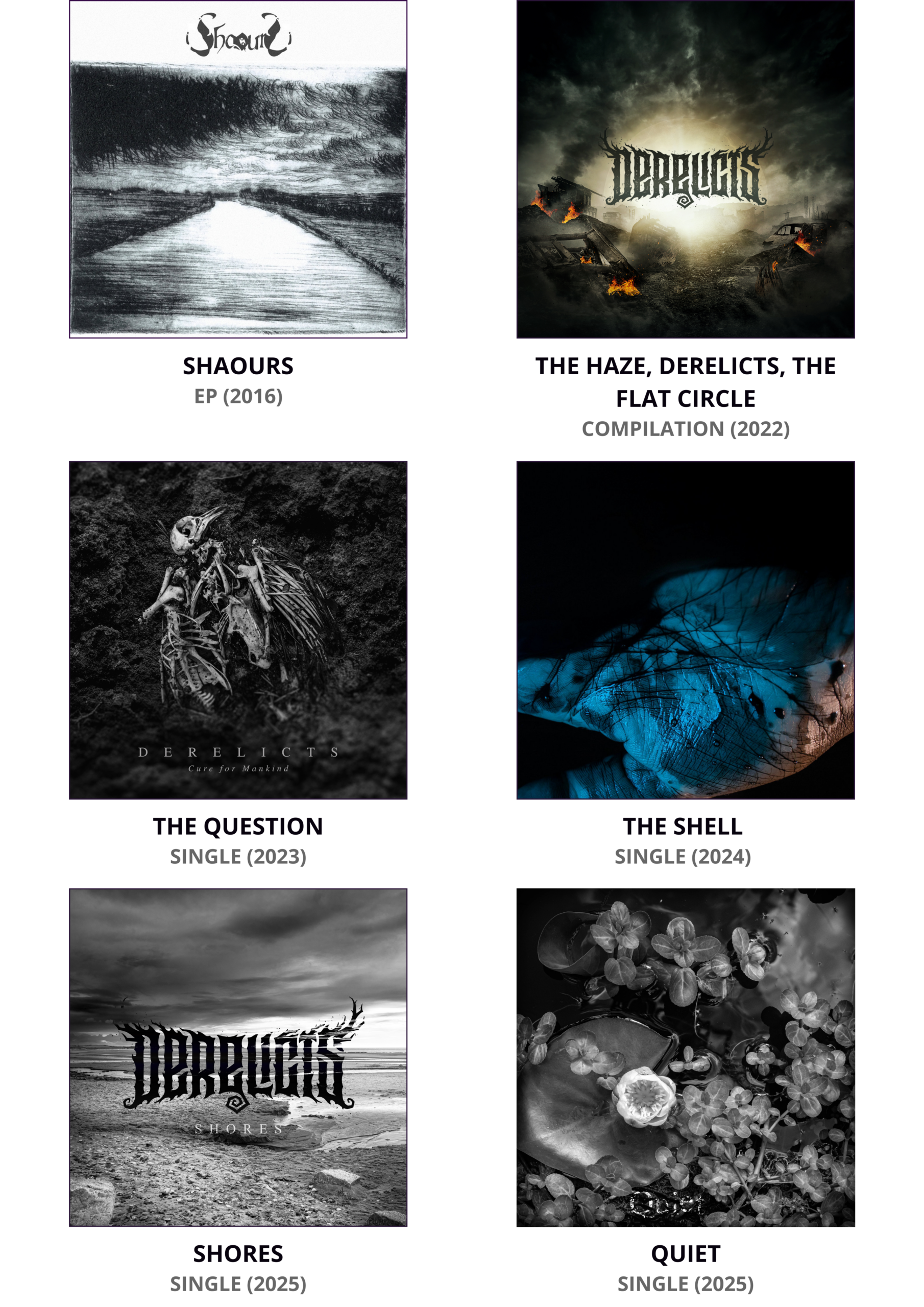Porté par un langage musical désormais clairement défini et une volonté d’explorer plus loin, Derelicts compose actuellement un nouvel EP.